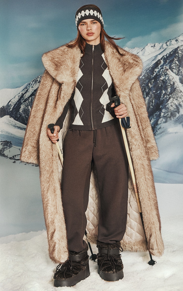 Bring timeless style to your layering with the chocolate argyle high neck zip up cardigan. Made from a cosy knit fabric with an argyle pattern and zip front, chocolate argyle material with a high neck design and a zip up fastening. Layer over a basic tee with denim for an easy everyday look.